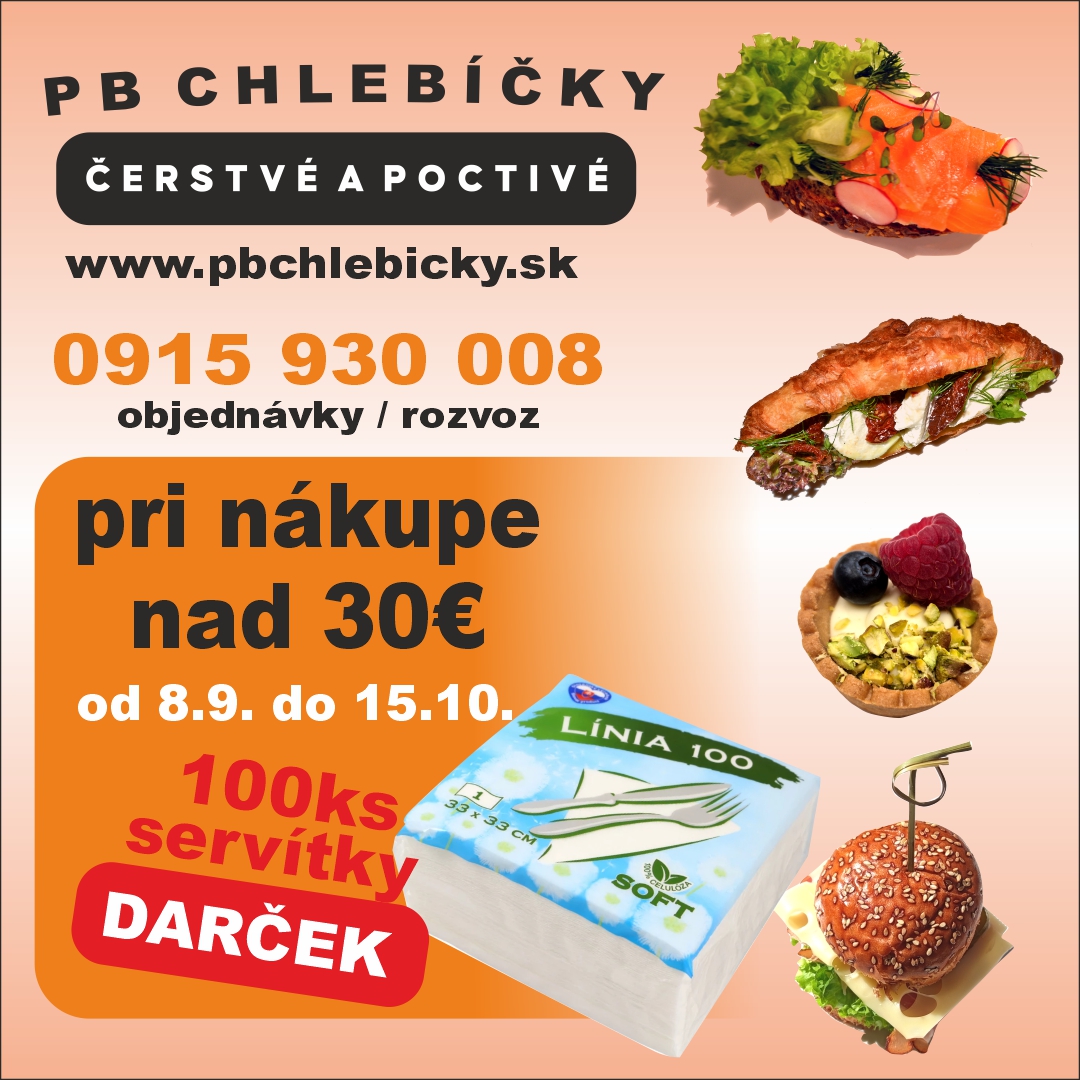 V termíne od 8.9. do 15.10.2025 sme pre Vás pripravili malý darček, ako poďakovanie za Vašu priazeň. Pri objednávke našich výrobkov v hodnote nad 30€ Vám venujeme jedno balenie papierových servítkov. Veríme, že sa zídu na vašej oslave, či inom podujatí.